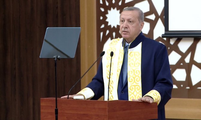 Kırgızistan'ın Manas Üniversitesinde kendisine fahri doktora tevdi edilmesi dolayısıyla düzenlenen törende konuşan Erdoğan, "Siz bizim kardeşimizsiniz. 15 Temmuz'da bize darbe yapanlar, Allah göstermesin, yarın aynı şeyi burada da yaparlar. Bunlar haindir, bunlar alçaktır. Biz damdan düşen olduğumuz için kardeşlerimizi uyarıyoruz. Bunlar askeri de ele geçirirler, polisi de ele geçirirler, yargıyı da ele geçirirler, üniversiteleri de ele geçirirler ve ondan sonra bir gece ansızın umulmadık şeyler olur. Aman dikkat" dedi.