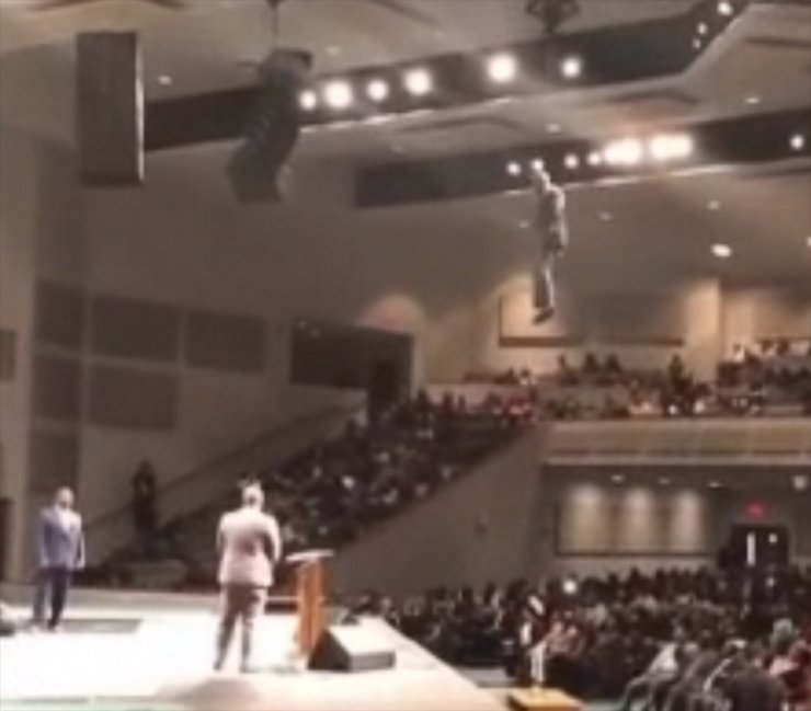 ABD'de verdiği vaazı daha etkili hale getirmek isteyen bir rahip kürsüye uçarak geldi. Rahibin uçarak geldiği anlar ise kısa sürede sosyal medyada yayıldı.