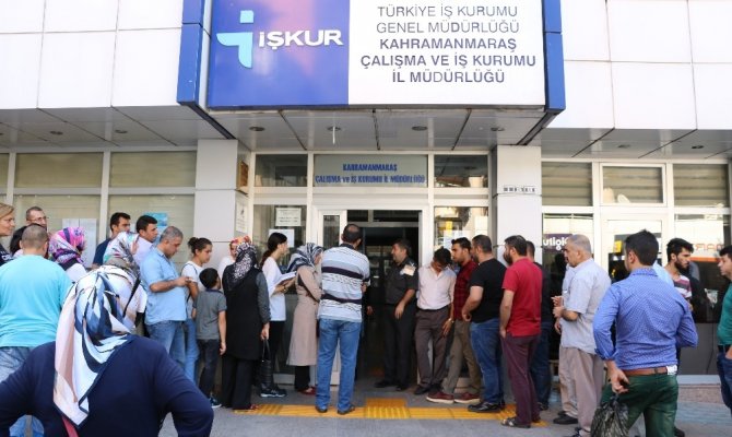 Sağlık Bakanlığı bünyesinde Kahramanmaraş'ta çeşitli kurumlarda kadrolu çalışmak için başvuru yapmak isteyenler, İŞKUR binası önünde uzun kuyruk oluşturdu. 72 kişilik daimi iş için günde bin 500 kişi başvuru yapıyor.