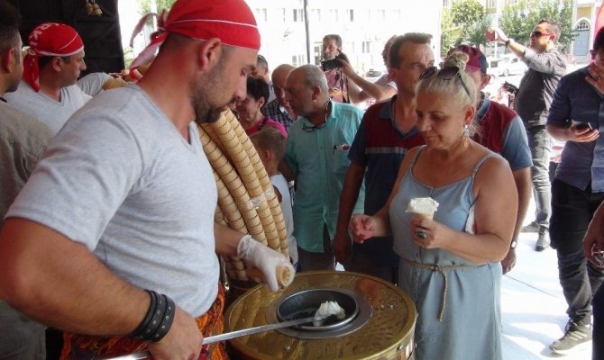 Meşhur dondurmayı tatmak için uzun kuyruklar oluşturan vatandaşlar, Maraşlı dondurma ustalarının yaptığı şovlarla da keyifli anlar yaşadı.