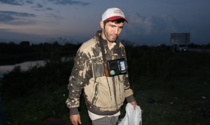 Boynunda radyosuyla hurda toplayan gençten hayat dersi