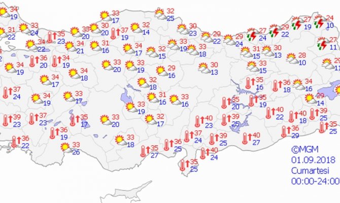 Yurdun kuzeydoğu kesimleri parçalı yer yer çok bulutlu, Trabzon, Rize, Artvin, Kars ve Ardahan çevreleri ile Erzurum'un kuzey ilçelerinin yerel olmak üzere sağanak ve gök gürültülü sağanak yağışlı, diğer yerlerin az bulutlu ve açık geçeceği tahmin ediliyor.