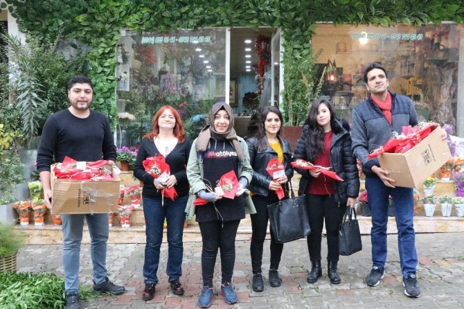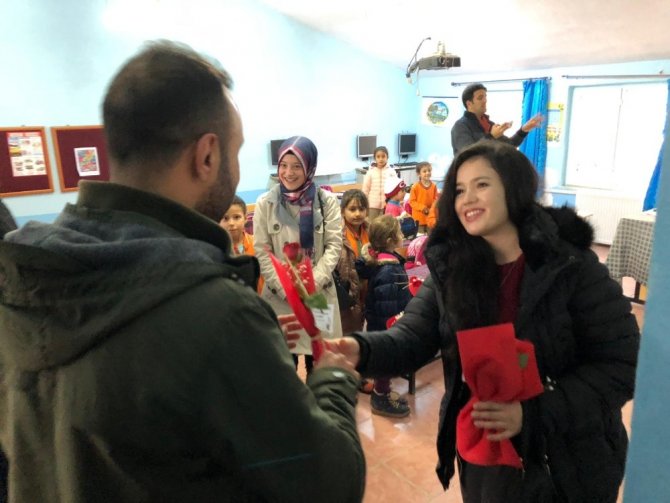 Kahramanmaraş'ta bir grup üniversite öğrencisi, 24 Kasım öğretmenler günü nedeniyle köy okullarındaki öğretmenlere gül hediye etti.