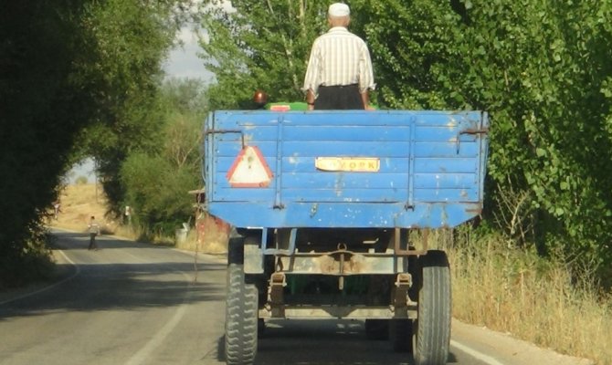 Kahramanmaraş'ta traktörün arkasındaki römorkta ayakta yolculuk yapan adam görenleri şaşırttı.