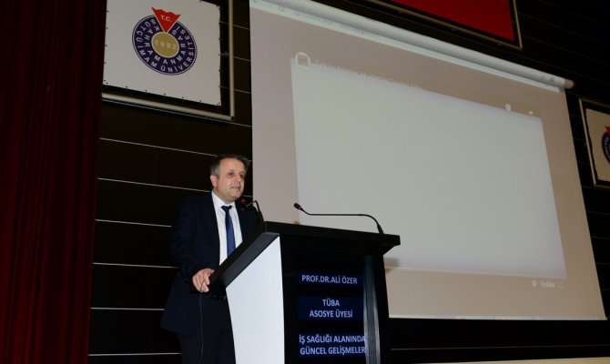 Açılış konuşmalarının ardından TÜBA Asosye Üyesi ve İnönü Üniversitesi Tıp Fakültesi Halk Sağlığı Anabilim Dalı Öğretim Üyesi Prof.Dr.Ali Özer tarafından "İş Sağlığı Alanında Güncel Gelişmeler" konulu konferans sunumu gerçekleştirildi. Özer, 2012 yılında yürürlüğe giren 6331 sayılı İş Sağlığı ve Güvenliği Kanunu çerçevesinde katılımcıları bilgilendirerek konuya ilişkin soruları cevaplandırdı.