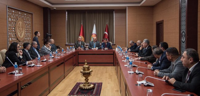 Kırgızistan-Türkiye Manas Üniversitesi Rektörü Prof. Dr. Sebahattin Balcı’yı 21 Kasım 2018’de makamında ziyaret eden Başkan Fatih Mehmet Erkoç, daha sonra Rektörlük Senato Salonu’nda Üniversite Senato Üyeleri ile buluştu.