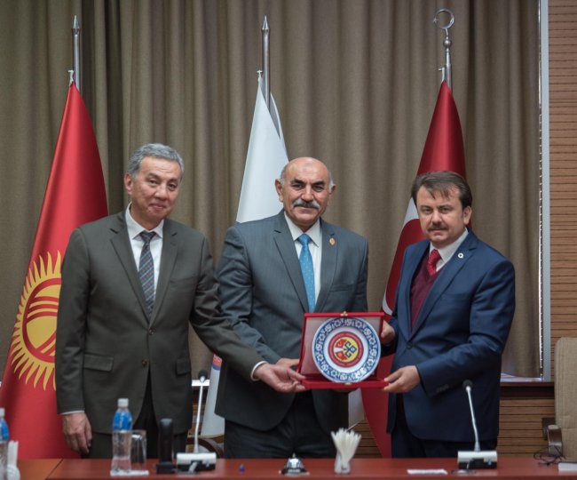Konuşmaların ardından Başkan Fatih Mehmet Erkoç, Kırgızistan-Türkiye Manas Üniversitesi Rektörü Rektörü Prof. Dr. Sebahattin Balcı ve Rektör Vekili Prof. Dr. Asılbek Kulmırzayev, iş birliği protokolü de imzaladı. Senatodaki program hediye takdimiyle sona erdi.