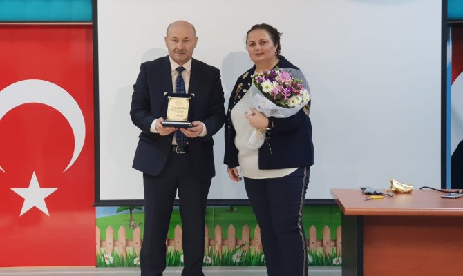 Okul Müdürü Zekeriya keskin tarafından OMÜ Öğretim Görevlisi Ayfer Keskin’e plaket ve çiçek takdim edilerek, seminer sona erdi.
