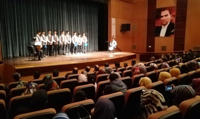 Düzenlediği birbirinden güzel sosyal etkinliklerle önemli konulara dikkat çeken Kahramanmaraş Dulkadiroğlu İlçe Müftülüğü Gençlik Koordinatörlüğü ve Kahramanmaraş Yatılı Hafızlık Kur’an Kursları Yaptırma ve Yaşatma Eğitim Kültür Derneği, bir başarılı etkinliğe daha imza attı. Necip Fazıl Kısakürek Kültür Merkezi’nde düzenlenen etkinlikte Çağın Tiyatro ekibinin Kutlu Nebi’nin Nazlı Sancaktarı’ isimli tiyatro gösterisi izleyenlerden tam not aldı. Sunuculuğunu Onikişubat İlçe Vaizi Bünyamin Engizek’in yaptığı program, Hoca Ahmet Yesevi İmam Hatip Lisesi öğrencilerinden Nurullah Kütük’ün Kur’an-ı Kerim tilaveti ile başladı. Daha sonra yine aynı okulun öğrencileri tarafından izleyicilere ilahi dinletisinde bulunuldu.