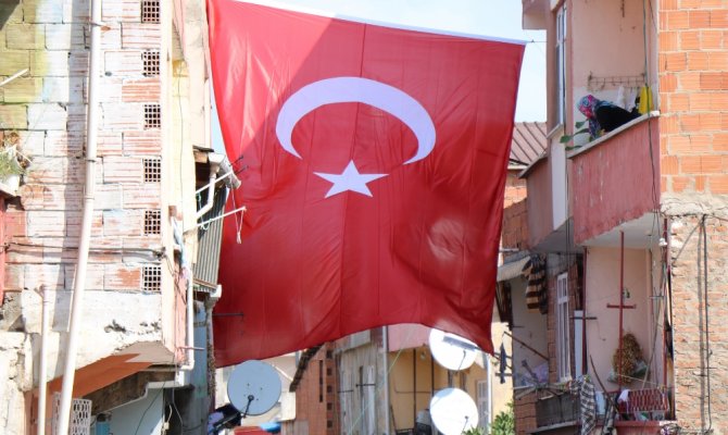 Şehidin baba ocağına İlkadım Belediyesi tarafından taziye çadırı kurularak, Türk Bayrağı asıldı.