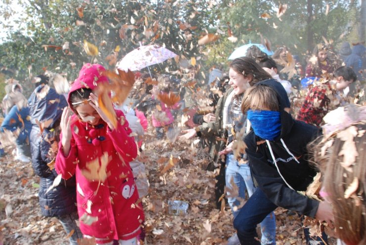 Tokat'ta özel bir okulda düzenlenen etkinlikte öğrenciler, zilin çalışması ile birlikte okul girişine dökülen bir kamyon dolusu yaprağa akın etti. Sonbaharda kuruyan yaprakları havaya atan öğrenciler, müzik eşliğinde eğlendi. Oyun havalarının yanı sıra öğrenciler, Hababam Sınıfı ve Yıldırım Gürses'in "Düşen bir yaprak görürsen" parçası ile sonbaharın tadını çıkardı. Kız öğrenciler ise ellerinde şemsiyelerle "Üsküdar'a gider iken aldı da bir yağmur" parçası eşliğinde kuruyan yapraklar üzerinde yürüdü. Öğrencilerin yaprak eğlencesine dahil olan bir öğretmen ise zor anlar yaşadı. Yere oturan öğretmene öğrenciler kucaklar dolusu yaprak attı.