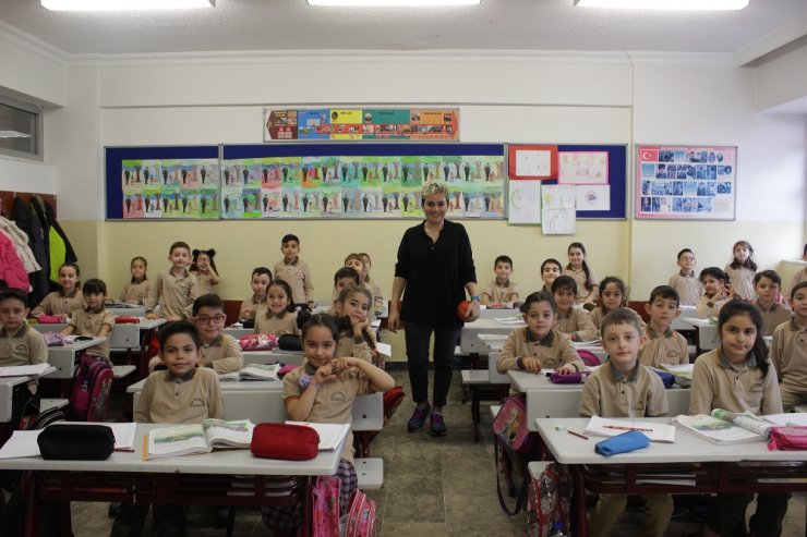 Sınıf Öğretmeni Elvan Ürer Sağgelen, öğrencileri spora teşvik etmek ve özellikle matematik dersini sevdirmek amacıyla ilginç bir yönteme başvurdu. Sınıfa pota kuran genç öğretmen, sorulara en hızlı cevap veren öğrencilere atış yaptırıyor.