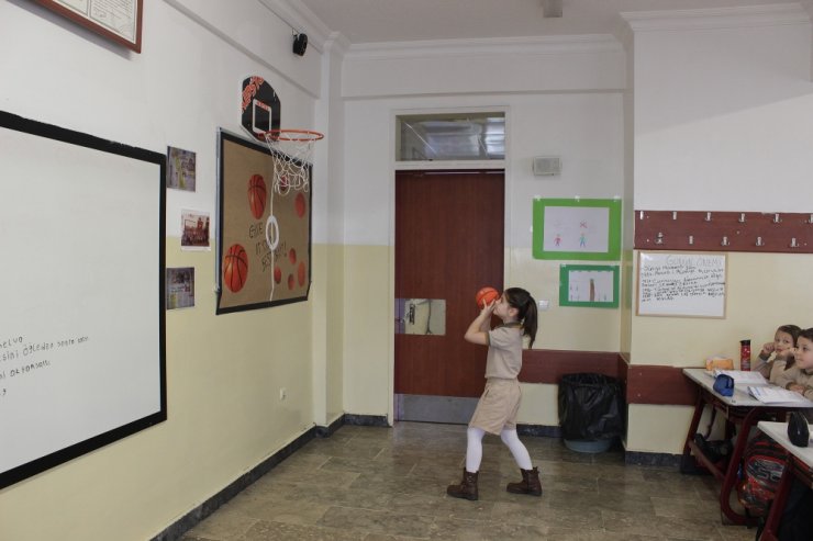 Derslerin farklı uygulamalarla daha eğlenceli geçtiğini ifade eden 2'nci sınıf öğrencisi Azra Nur Güneş, "Arkadaşlarıma soru soruyorum, onlar bana soruyor bilince de 2-3 kez basket atıyoruz. Derste çok eğleniyoruz basket attıkça eğlendiğimiz için de herkes mutlu oluyor" dedi.