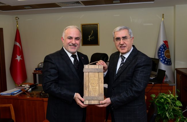 Ziyaret kapsamında Türk Kızılay Genel Başkanı Dr. Kerem Kınık, Rektör Prof. Dr. Niyazi Can’a Kızılay tarafından özel olarak üretilen doğal maden suyu hediye etti. Rektör Can da Genel Başkan Kınık’a Kahramanmaraş Ansiklopedisi ve oyma ceviz sandık hediye etti.