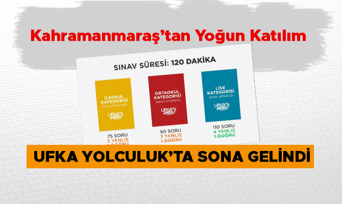 Tüm Türkiye’de aynı anda yapılacak olan Ufka Yolculuk Yazılı Sınavı Kahramanmaraş merkez ve ilçelerinde 120 binada, 546 sınıfta 11 bin 227 yarışmacının katılımı ile 17 Mart Pazar Günü saat 10:00 da gerçekleştirilecek. Yazılı sınav puanı 27 Mart Çarşamba saat 20.00’da açıklanacak.