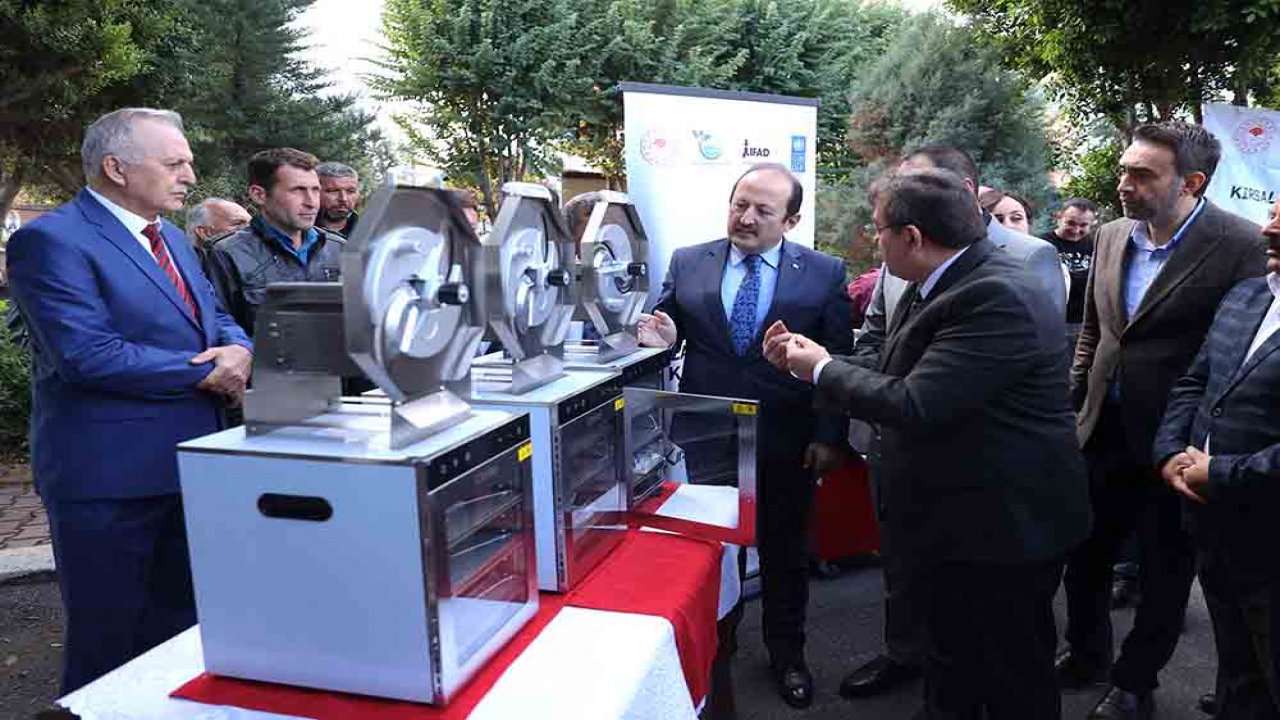 Konuşmaların ardından proje kapsamında, yüzde 80 hibeyle 195 çiftçiye taşınabilir güneş enerjisi sistemi, yüzde 100 hibeyle 31 kişiye ev tipi sebze meyve kurutma makinesi, 44 kişiye üzüm sıkma makinesi, 37 kişiye hamur yoğurma makinesi teslim edildi.