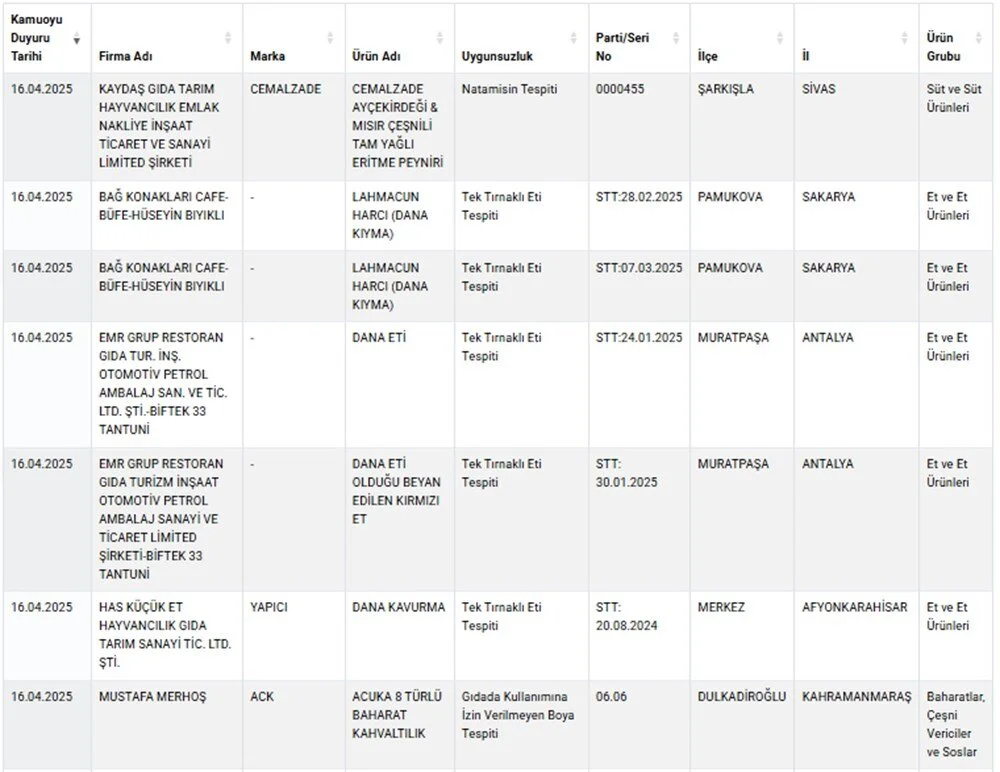 Bu durum, Tarım ve Orman Bakanlığı'nın 'Sağlığı Tehlikeye Düşürecek Gıdalar' listesinde detaylı olarak yer aldı. Bakanlık yetkilileri, tüketicilerin sağlığını korumak amacıyla denetimlerin aralıksız devam ettiğini ve tespit edilen uygunsuzlukların kamuoyuyla şeffaf bir şekilde paylaşıldığını vurguladı.