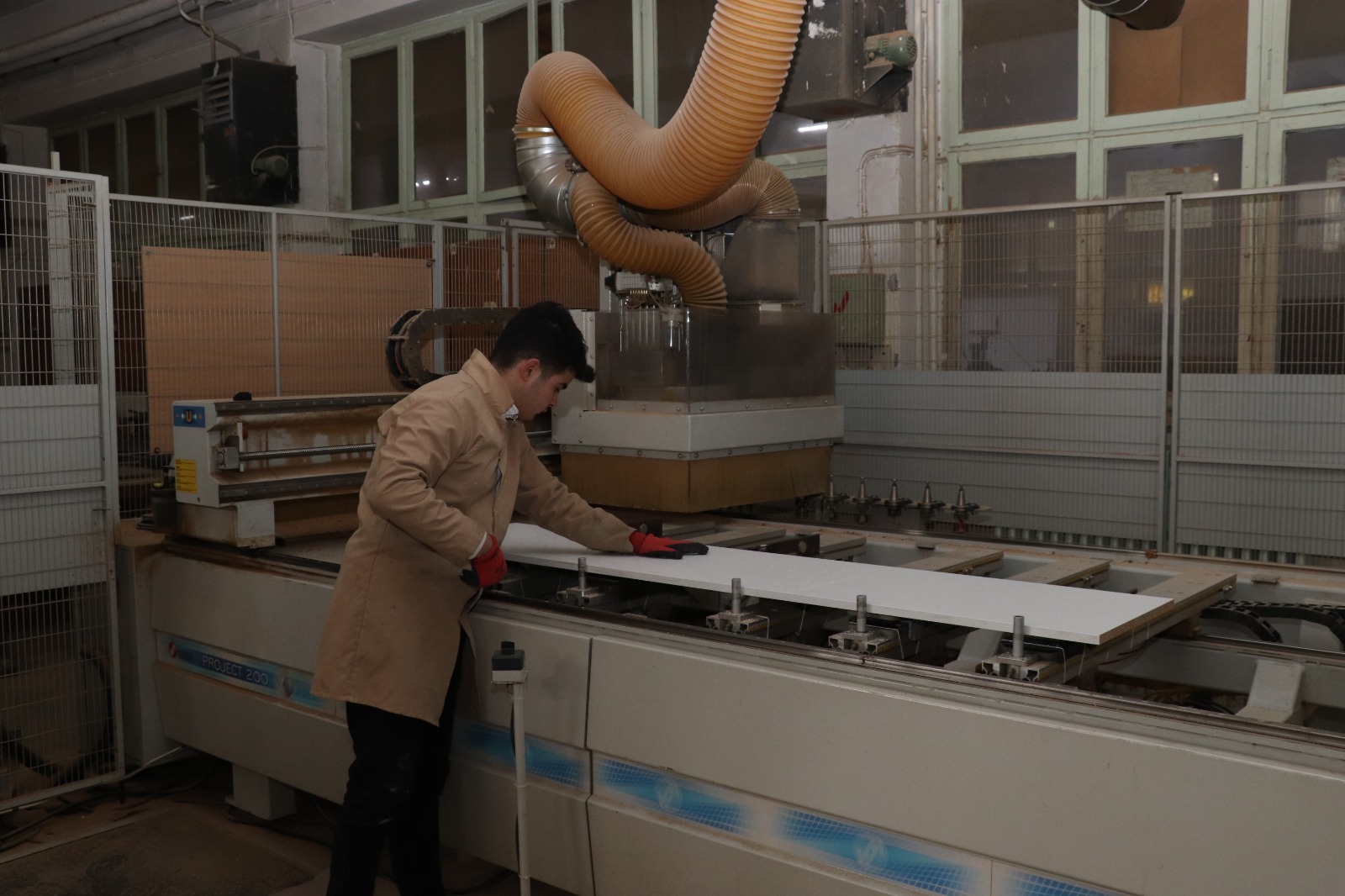 Laboratuvar mobilyalarından ilaç dolaplarına, depolama ünitelerinden tedavi hazırlama ünitelerine kadar birçok farklı mobilya, okulun tam teşekküllü ağaç işleme atölyesinde hazırlanıyor. 1400 metrekarelik atölye, döner sermaye işletmesi kapsamında birçok kamu kurumunun mobilya ihtiyacını karşılıyor ve 2024 yılı cirosu yaklaşık 8 milyon liraya ulaşmış durumda.