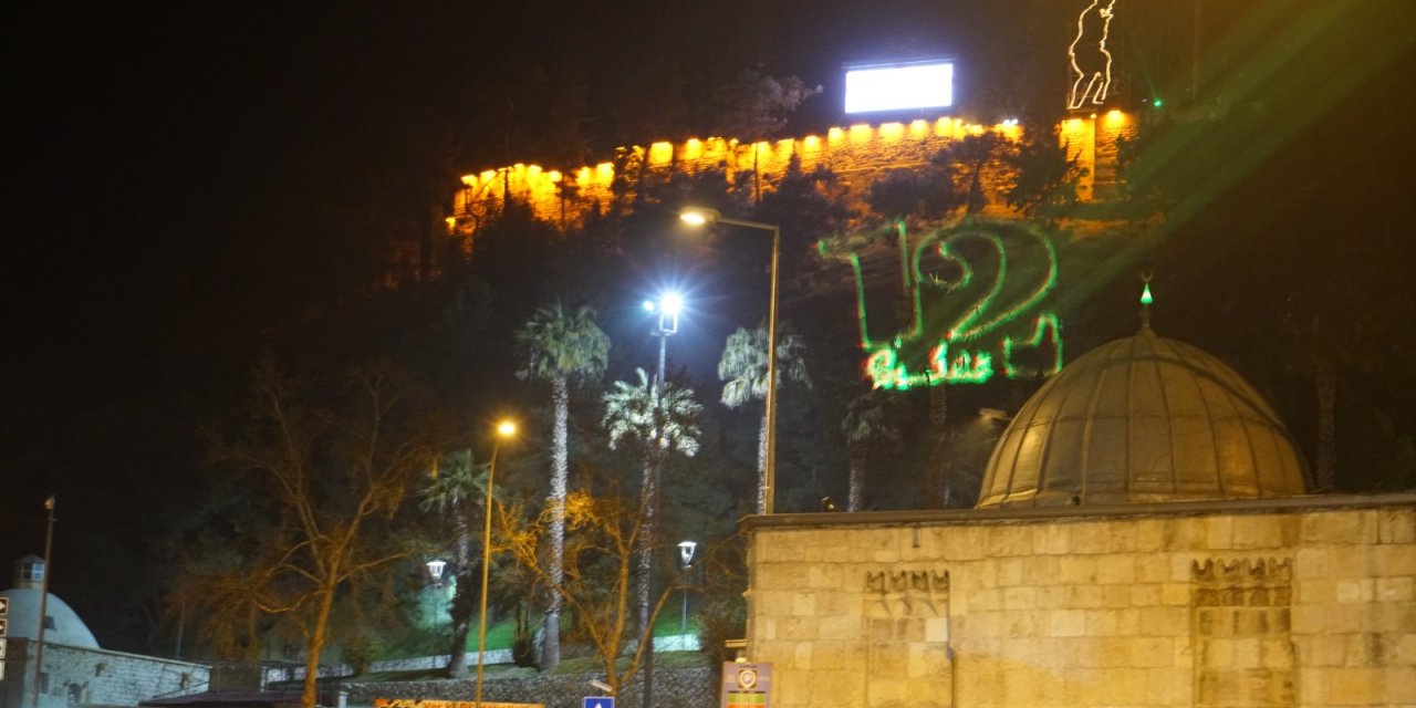 Kahramanmaraş’ta lazer gösterisi! Kahramanların isimleri kaleye yansıtıldı