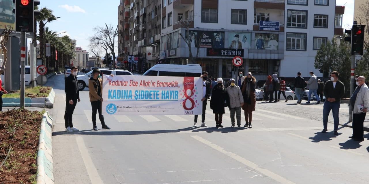Kahramanmaraş'ta Ülkü Ocakları kırmızı ışıkta kadına şiddete ‘DUR’ dedi