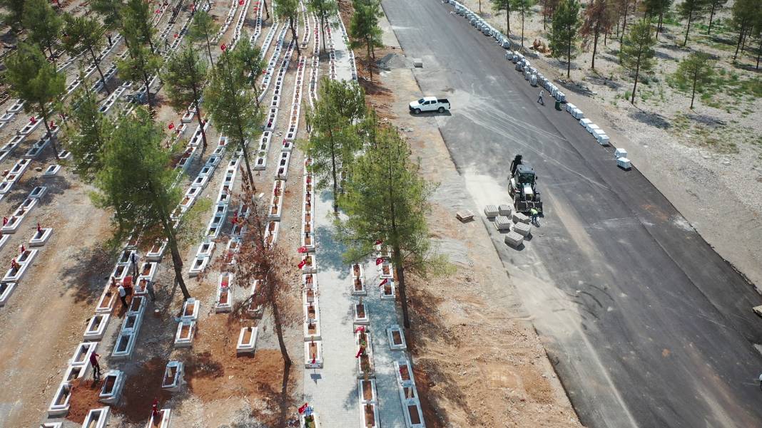 Kahramanmaraş depreminin ardından binlerce kişinin hayatını kaybettiği Kapıçam mezarlığında deprem şehitlerinin mezarları için düzenleme çalışması başladı.