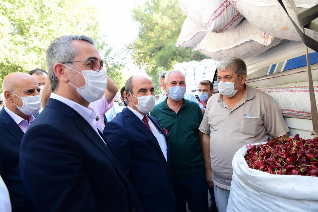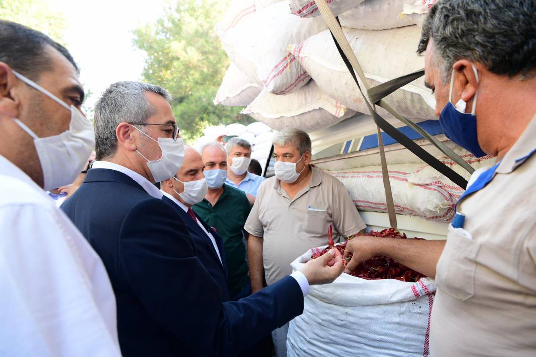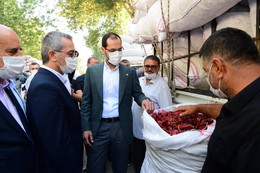 Burada yılın ilk hasadını görüyoruz. Bu biber buraya gelinceye kadar önemli bir aşamadan geçerek buraya geliyor ve büyük bir zahmeti var. Bunun yanı sıra bir alın teri, bir emek ve bir gayret var. Biz de bu çaba ve gayretlere karşılık marka değerini her zaman yükselterek geliştirmemiz gerekiyor. Ben yıllardan beri söylediğim bir slogan var ve bunu Maraş Kırmızıbiberine yazalım diyorum: Gelin hayatın acılarını birlikte paylaşalım.