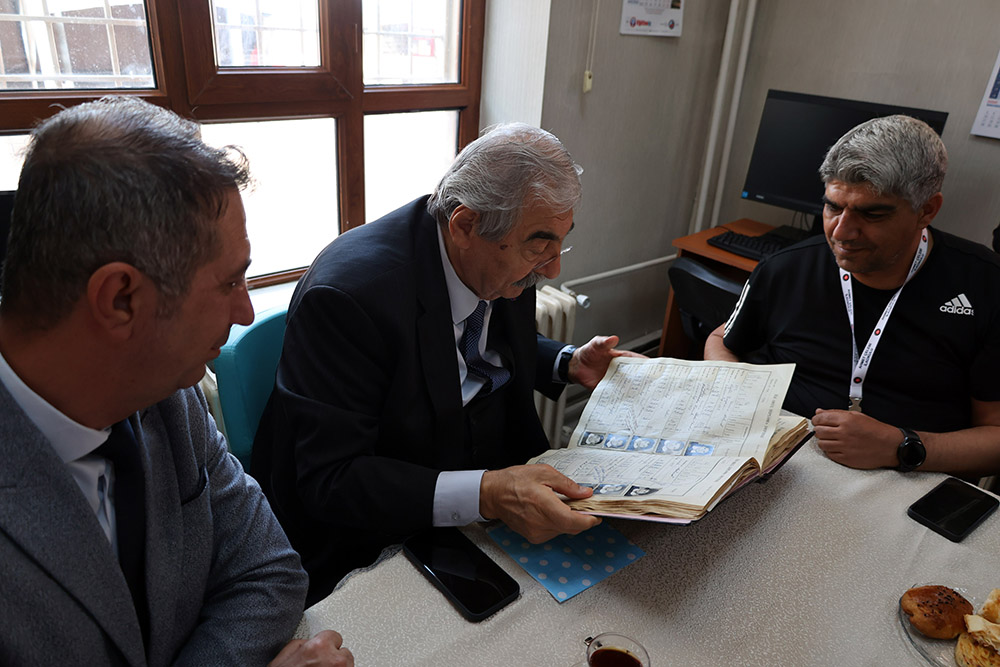Eski mezunlardan Abdulkadir Konukoğlu’nu ağırlamanın mutluluğunu yaşadıklarını belirten Ahmet Çelebi İlkokulu Müdürü Erol Taşdemir, Konukoğlu’na, üzerinde okul kütüğündeki mezuniyet fotoğrafı bulunan plaket takdim etti.