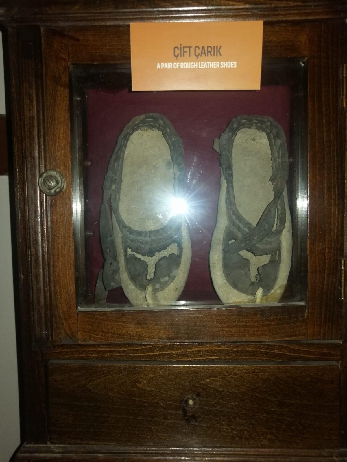 Sonra “Yas Odası”’na geçtim. Kenarda duran feneri alıp, karanlık odaya girdim.Sağlıkçı malzemeleri, çeşitli su mataraları, üniformalar,eskimiş bir postal,eski lastik ayakkabı, iğne kutuları,sargı bezleri, yırtılmış ve eskimiş fotoğraflar,esirin yaptığı boncuktan uzun ince bir yılan, birkaç mektup… Yokluğun her çeşidi var.İnsanın boğazı düğümleniyor.Aklıma Kurtuluş Savaşı’nda oğluna morfin vermeyen ve ölmesine sebep olan doktor baba geldi.Yarası hafif olana morfini yapıp tekrar savaşa gidebilsin diyerek,kendi öz oğlunun yarası çok ağır ve ölecek olduğu için vermemişti.Yani “vatan kolay kazanılmadı.” Altını bir daha çizmek istedim.