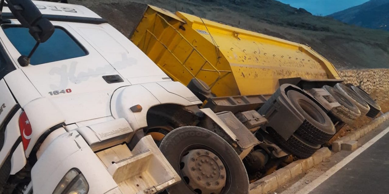 Kahramanmaraş’ta kontrolden çıkan kamyon yan yattı