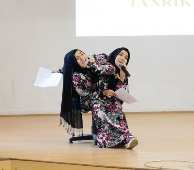 Kur'an-ı Kerim tilavetiyle başlayan programa katılan ve 18 yaşına giren siyam ikizleri Sema ve Ayşe Tanrıkulu okudukları şiirle herkesi duygulandırdı.