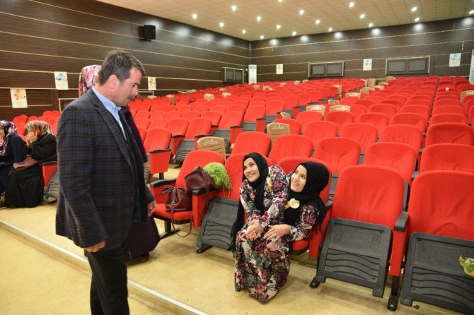 'Faran Dağlarında Açan Sevgili" adlı şiiri okuyan Sema ve Ayşe Tanrıkulu'na Türkoğlu Belediye Başkanı Osman Okumuş, anlamlı ve duygu yüklü şiirlerinden dolayı teşekkür etti.