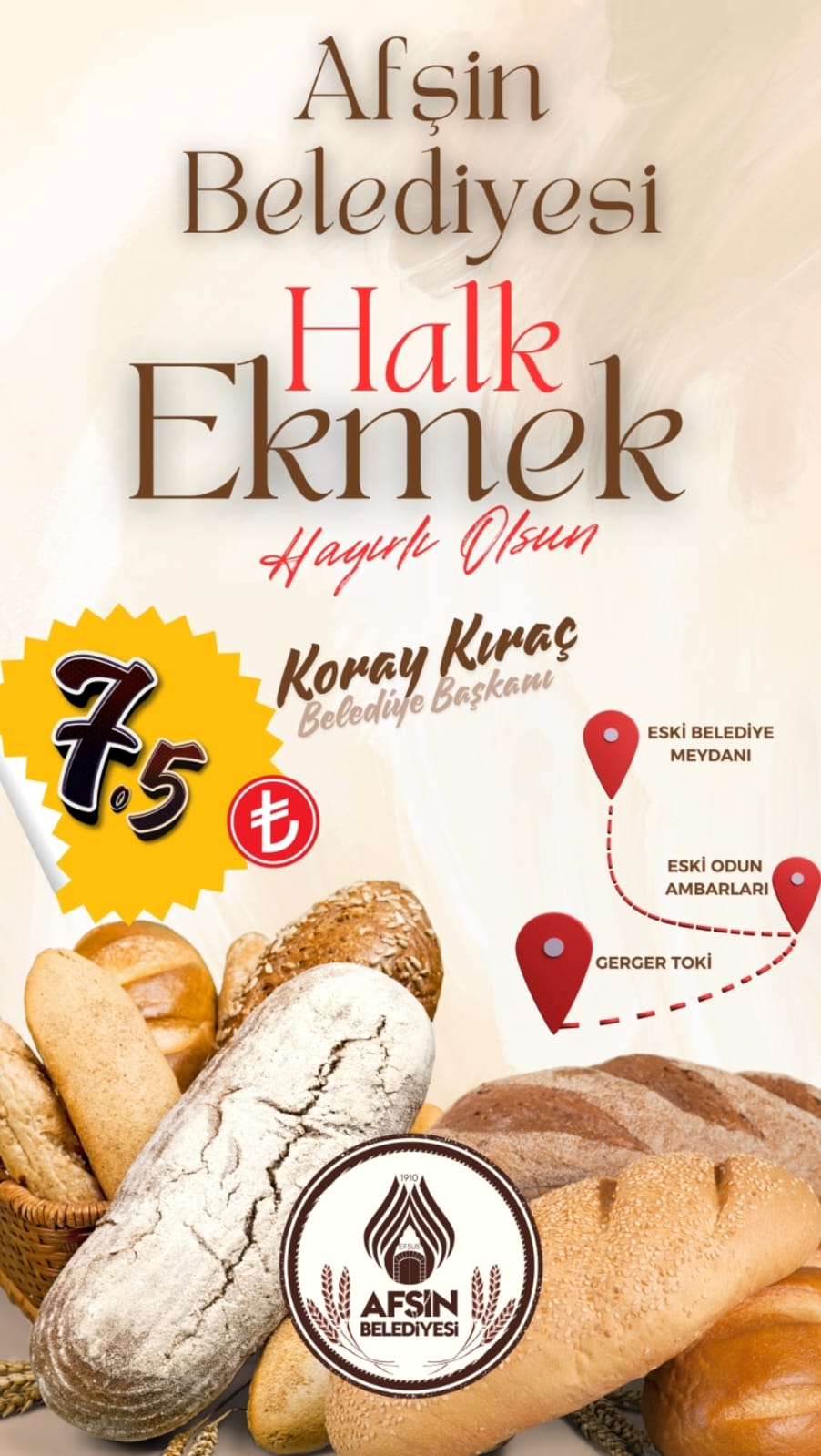 "Vatandaşlarımız bizden uygun fiyatlı, kaliteli ekmeğe kolay ulaşmak istediklerini söyledi. Biz de halkımızın sesini dinledik ve sözümüzü tuttuk! Ramazan ayında sofraların bereketini artırmak, özellikle dar gelirli ailelerimizin bütçesine katkı sağlamak için Halk Ekmek Satış Noktaları’nı açıyoruz. 6 Mart itibariyle saat 15.00’ten sonra Afşin’de ekmek almak daha hesaplı, daha kolay olacak. Halkımızın temel gıda maddesi olan ekmeğe uygun fiyatla erişebilmesi için çalışmaya devam edeceğiz."