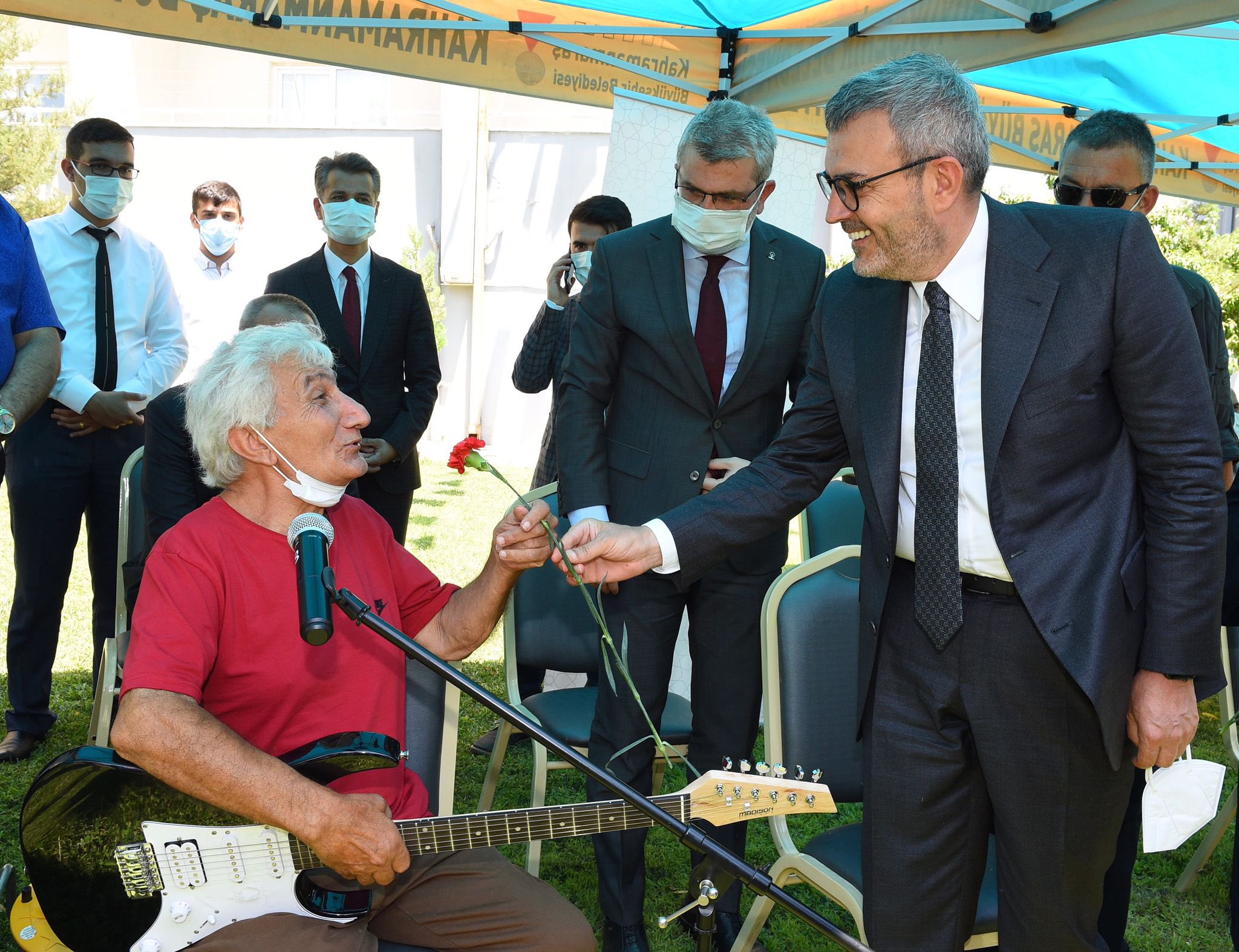 Bayramlaşmanın ardından birçok ünlü sanatçının arkasında gitar çalan ve vokalistlik yapan 70 yaşındaki huzurevi sakini Neşat Dinçer, mini konser verdi.