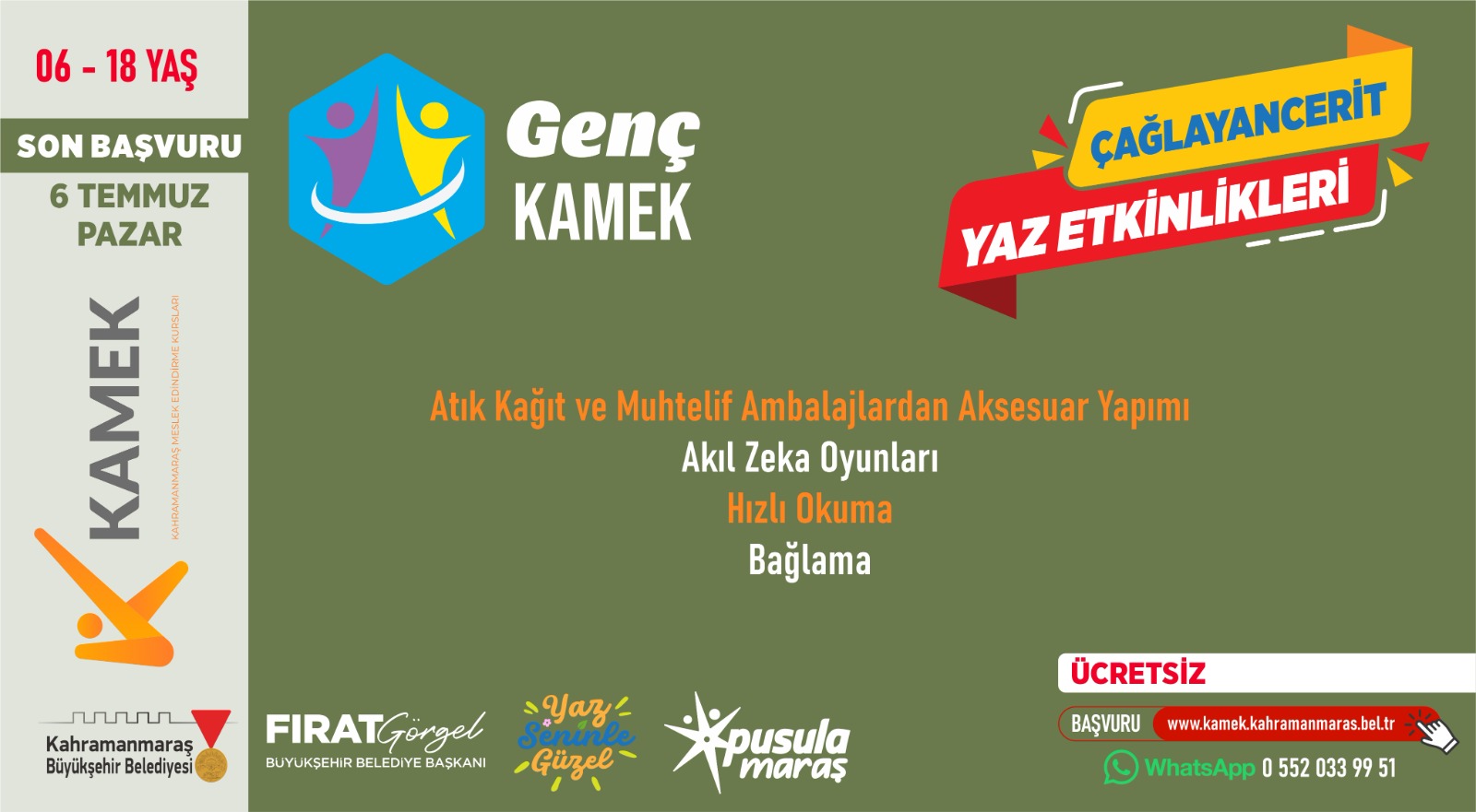 Tamamen ücretsiz olarak sunulan bu eğitimlere başvurular, 6 Temmuz Pazar akşamına kadar çevrimiçi olarak alınacak.Başvuru yapmak isteyenler, https://kahramanmaras.bel.tr/duyuru/2025/06/27/genc-kamek-ilce-kurslari-basvurusuadresinden işlemlerini gerçekleştirebilecek.