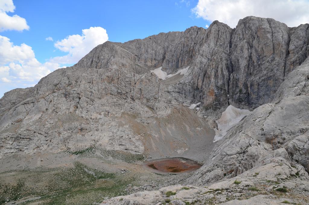 Ali Gölünü arkada bırakıp Nurhak Dağlarının zirvesine biraz daha yaklaştık. Dağların kuytu köşelerinde kalan karlı patikaları zorlukla aşarak yukarı tırmandık. Artık zirveye biraz daha yaklaştık.