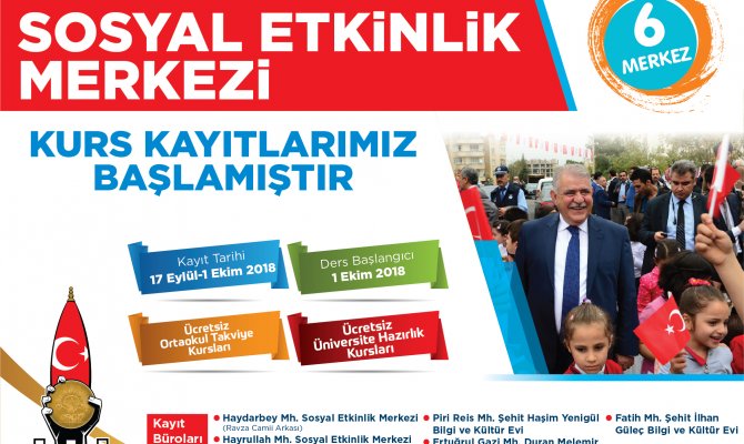 Toplamda 34 derslikten oluşan bu merkezde 3500 öğrenci ücretsiz olarak eğitim alabilecek. 6 noktada eğitim verilecek Sosyal Etkinlik Merkezleri takviye kurslarına, 17 Eylül – 1 Ekim 2018 tarihleri arasında öğrencilerin başvuru yapabileceği belirtildi.