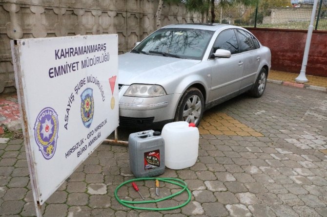 Edinilen bilgiye göre, İl Emniyet Müdürlüğü polis ekipleri Dulkadiroğlu ilçesi Doğukent Mahallesi'nde bir kamyondan mazot çalındığı ihbarı üzerine olay yerine geldi. Kamyondan 30 litre mazotu hortumla çekip bidona aktaran ve 27 C 0240 plakalı otomobilin bagajına koymaya çalışan Veysel Y. (30) ve Cuma A. (36) polis tarafından suçüstü yakalandı. Mazot bidonları, hortum ve hırsızlıkta kullanılan çeşitli aletlere el konuldu. Gaziantep'ten Kahramanmaraş'a sabah saatlerinde geldikleri ve suç kayıtları olduğu belirlenen şüpheliler adliyeye sevk edildi.
