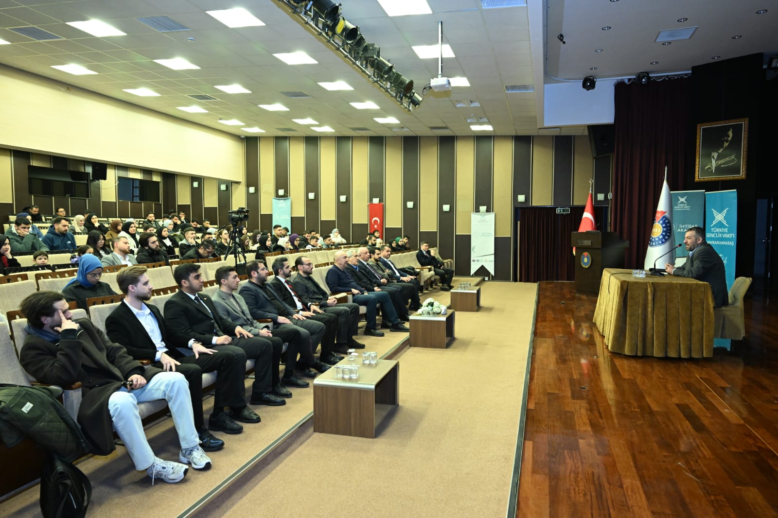 Konuşmalarının sonunda salondakilerin sorularını da cevaplayan Kılıçarslan'a, konuşmalarını TÜGVA Kahramanmaraş İl Temsilcisi Furkan Seyithanoğlu hediye takdiminde bulundu.