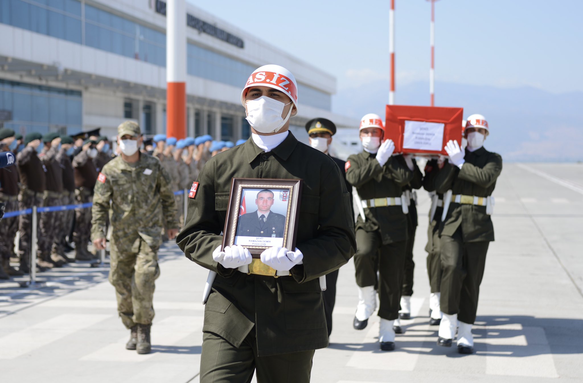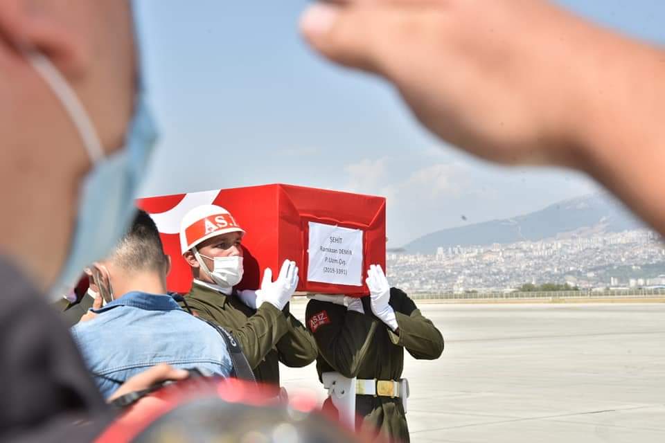 Suriye’nin İdlip bölgesinin Kuzey Afiz üs bölgesinde arama tarama faaliyetleri sonrası, dönüş yoluna geçen zırhlı araca, Kafreya’nın Güneyinde teröristlerce tank savar saldırısı sonucu şehit olan ve Kahramanmaraş’ın Türkoğlu ilçesi nüfusuna kayıtlı Piyade Uzman Çavuş Ramazan Demir’in naaşı Kahramanmaraş’a getirildi.