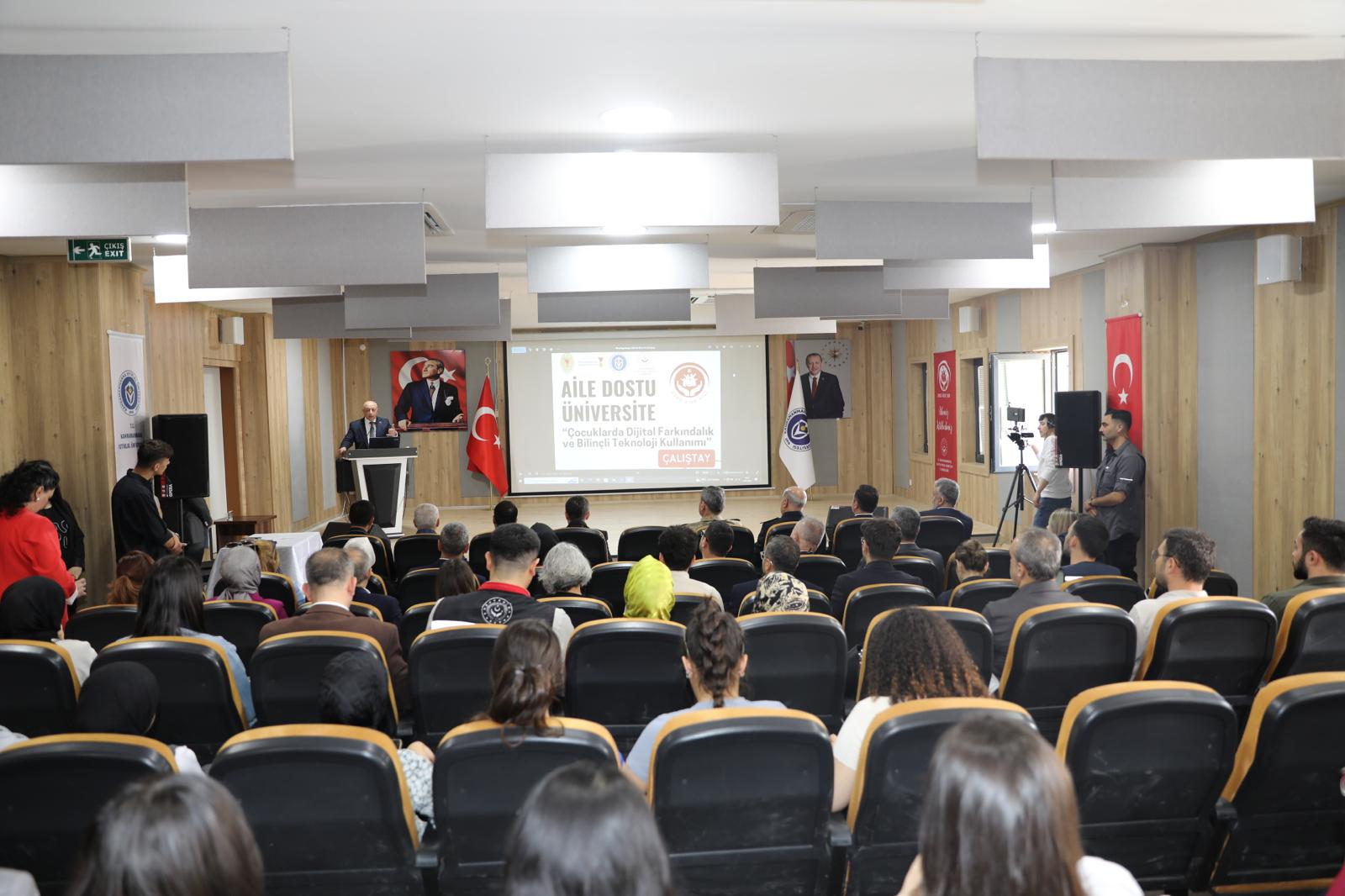 KİÜ İnsan ve Toplum Bilimleri Fakültesi Konferans Salonu’ndaki program, saygı duruşunda bulunulması ve İstiklal Marşı’nın okunmasıyla başladı. KİÜ’nün “Aile Dostu Üniversite” mottosu ve “2025 Aile Yılı” etkinlikleri kapsamında düzenlenen çalıştayda, dijital dünyanın sakıncalı yönleri özelde çocuklar ve genelde tüm toplum bağlamında alındı.