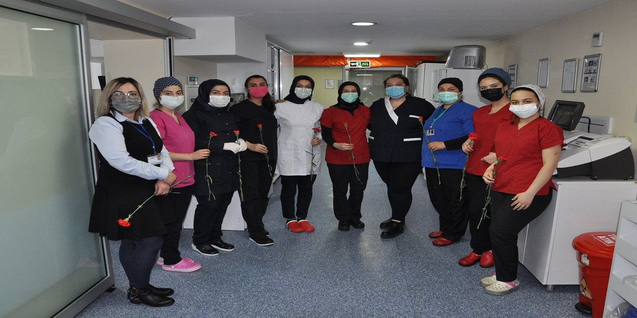 Kahramanmaraş'ta Özel Sular Vatan Hastanesi, 8 Mart Dünya Kadınlar Günü'ne özel hastane çalışanları ve hastalarına karanfil dağıttı.