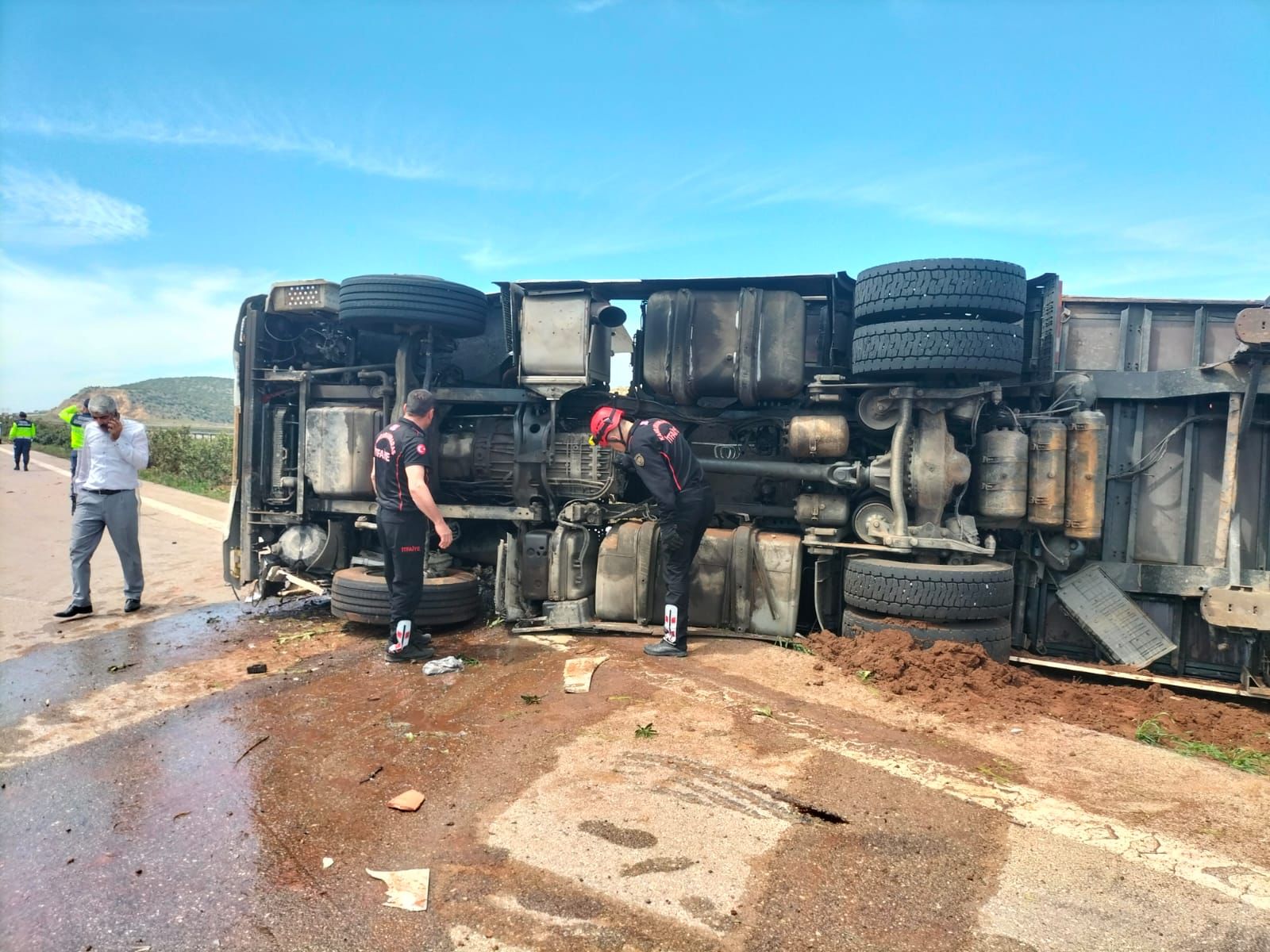 Kahramanmaraş’ta otobanda tır devrilmesi sonucu yaşanan kazada sürücü yaralandı.