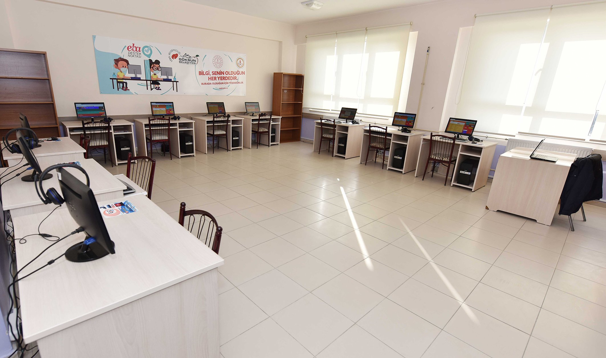 Belediye ekipleri daha önce hayata geçirdiği 16 bilgisayarlı iki bilişim sınıfı ve iki mobil araç’tan sonra 10 bilgisayarlı yeni bir bilişim sınıfını daha öğrencilerin hizmetine sundu.