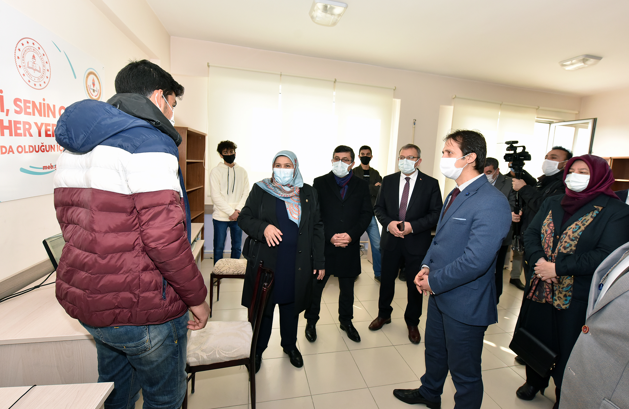 AK Parti Kahramanmaraş Milletvekili Habibe Öçal, beraberinde İlçe Kaymakamı Ümit Şeref Kayacan ve Belediye Başkanı Hüseyin Coşkun Aydın ile birlikte Göksun Anadolu İmam Hatip Lisesinde açılan EBA Destek Noktasını ziyaret ederek öğrencilerle sohbet etti.