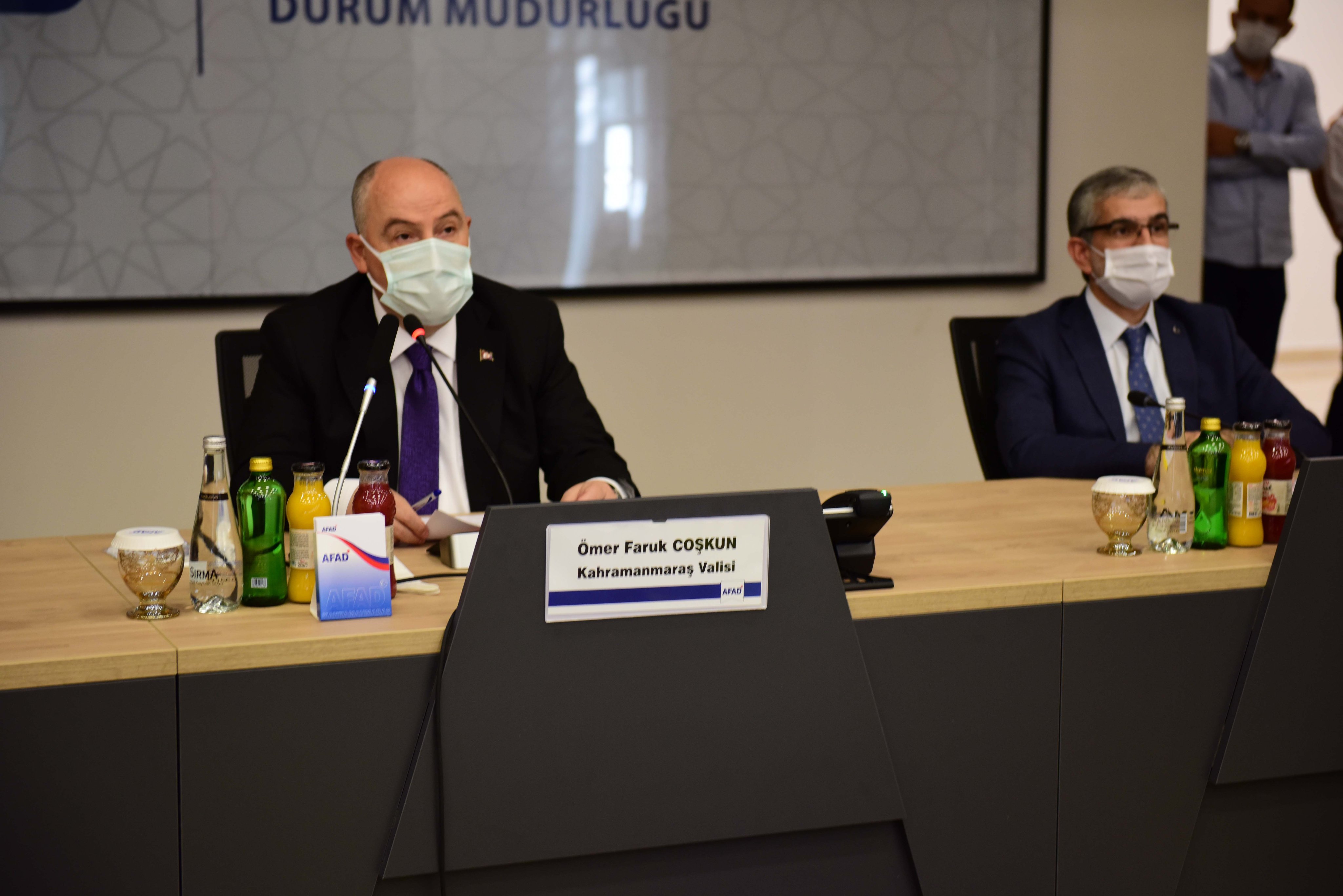 Vali Coşkun, senaryo gereği Kahramanmaraş’ta meydana gelen 7,3 büyüklüğündeki depremle ilgili ilk olarak, Kahramanmaraş İl Afet ve Acil Durum Yönetim Merkezi’nde toplanan, kamu kurum ve kuruluşu temsilcileri, 26 Çalışma grubu ve saha keşif ekiplerinden gelen ihbarlar hakkında koordinasyon kurulu üyeleriyle değerlendirmeler yaptı.