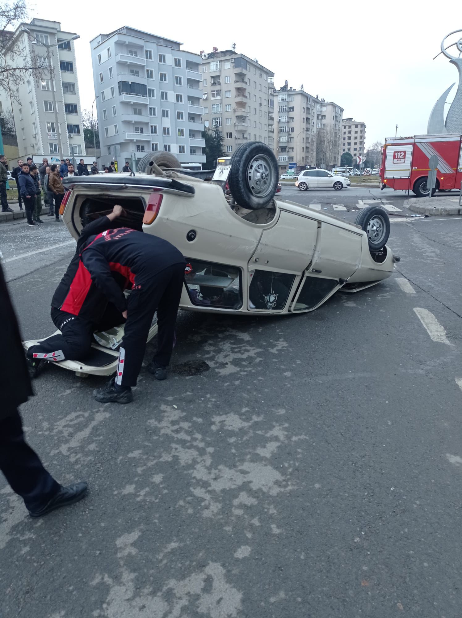 ŞEHİR MERKEZİNDE ARAÇ TAKLA ATTI