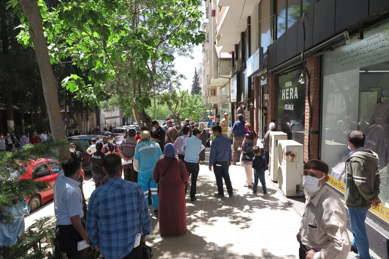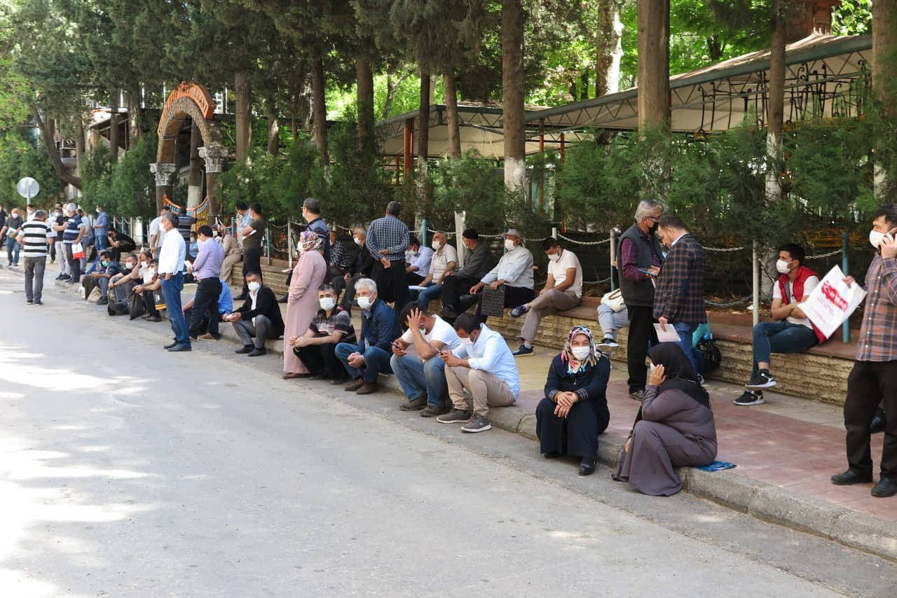Kahramanmaraş’ta ve tüm yurtta 29 Nisan tarihinde başlayacak olan tam kapanmada kısıtlamasından muaf olmak isteyen çiftçiler, çiftçi belgesini alabilmek için geldikleri Ziraat Odası önünde korona virüsü unuttular.