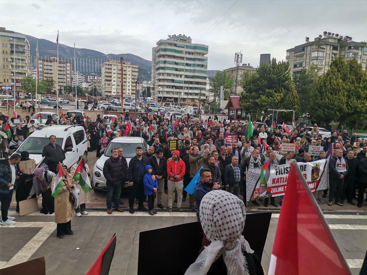 Kahramanmaraş’ta gerçekleştirilen etkinlikte, 50 farklı STK “Özgür Filistin, Özgür Aksa ve Özgür Kudüs” sloganlarıyla bir araya geldi.