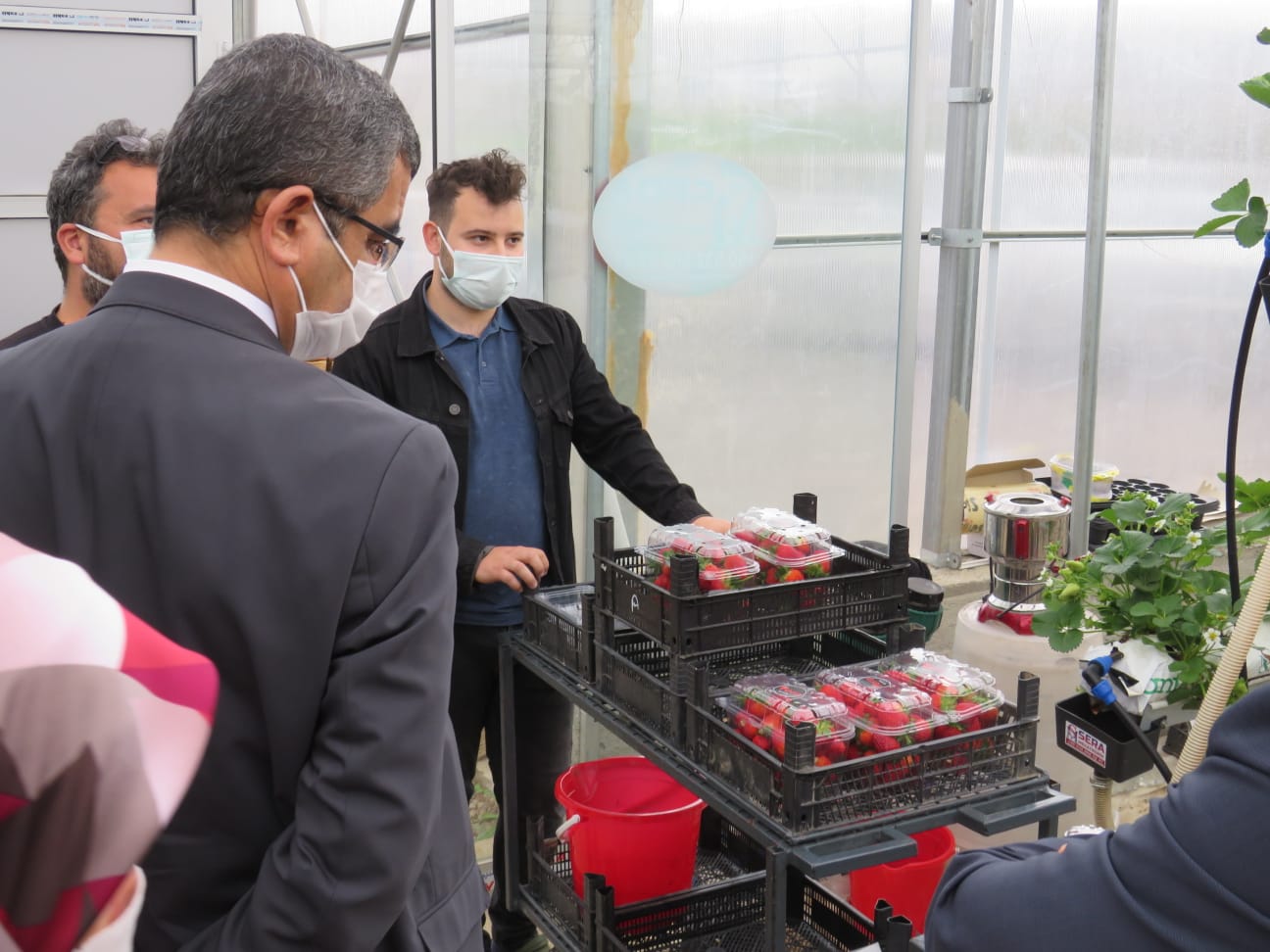 15 yıllık bankacılık mesleğini bırakarak çilek üretimine başlayan Ümit Uçar, projesine başlamadan önce Mersin’in Anamur ilçesinde bulunan çilek ve muz seralarında incelemeler yaptığını ve araştırmaları sonucunda gelişmiş teknoloji kullanarak serada topraksız çilek üretimi yapmaya karar verdiğini ve 2020 yılı yaz aylarında başlattığı projesinin 3 aylık süre içerisinde tamamlandığını ifade etti. Ekim ayında fide dikimlerine başlayarak Aralık ayı itibariyle de serasında ilk meyvelerini almaya başladığını ve bu yıl 150 ton civarında rekolte beklediğini belirten Uçar, yaklaşık 4 buçuk milyon TL tutarındaki projesinde herhangi bir kurum ve kuruluştan hibe veya teşvik almadığını dile getirdi.