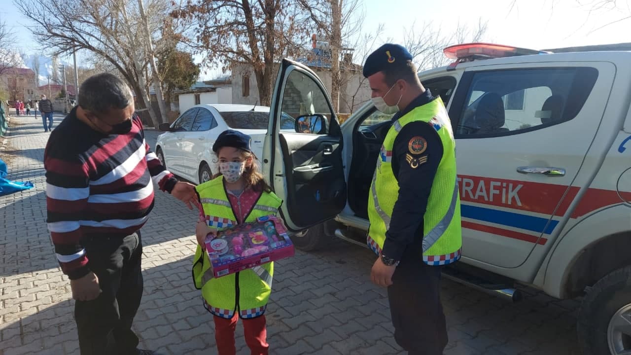 Küçük kızı evinde ziyaret eden jandarma ekipleri, Nida’ya önce jandarma trafik yeleği ve beresi giydirdi. Küçük Nida’yı ekip aracına alan ve kendi mahallesinde sirenler eşliğinde gezdiren jandarma ekipleri, hediyeleri unutmadı.